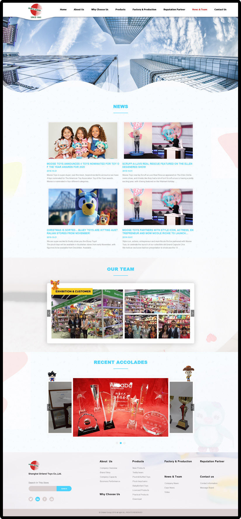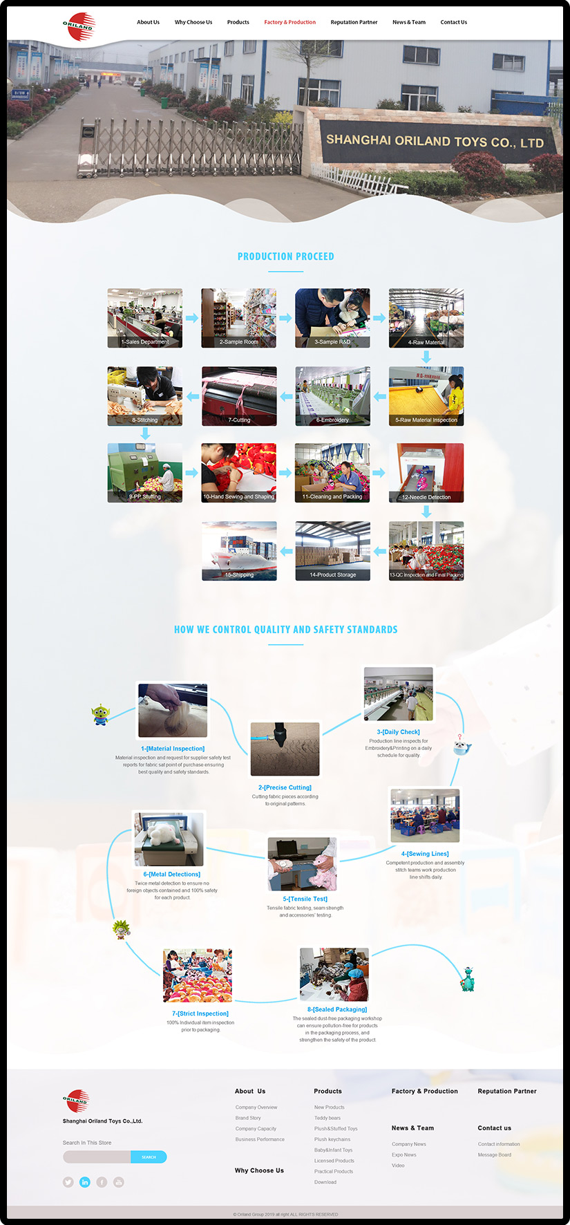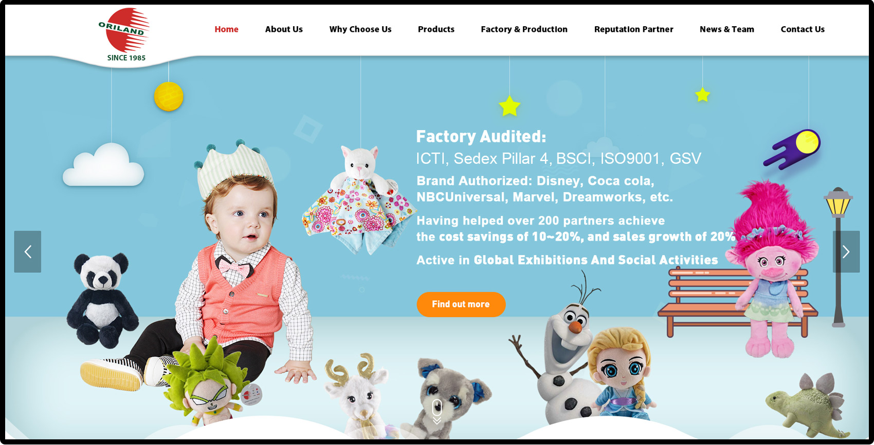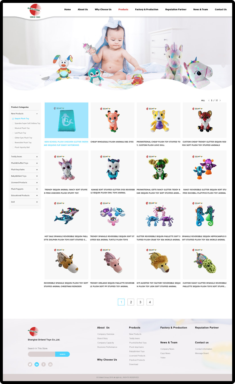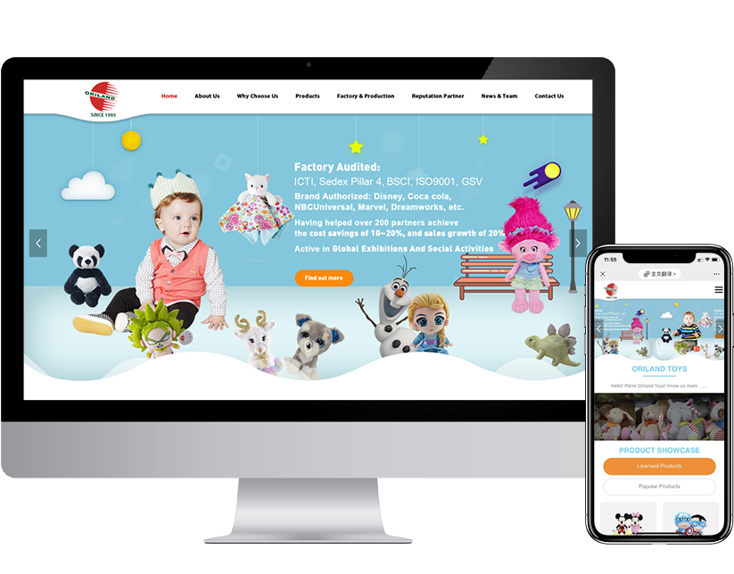 Established in 1985, ORILAND has full experience & focus on plush toys until now and is one of the Top 10 golden suppliers of plush toys in China. As the Leader in plush toys field, ORILAND has passed Factory Audited:?ICTI, Sedex Pillar 4, BSCI, ISO9001,